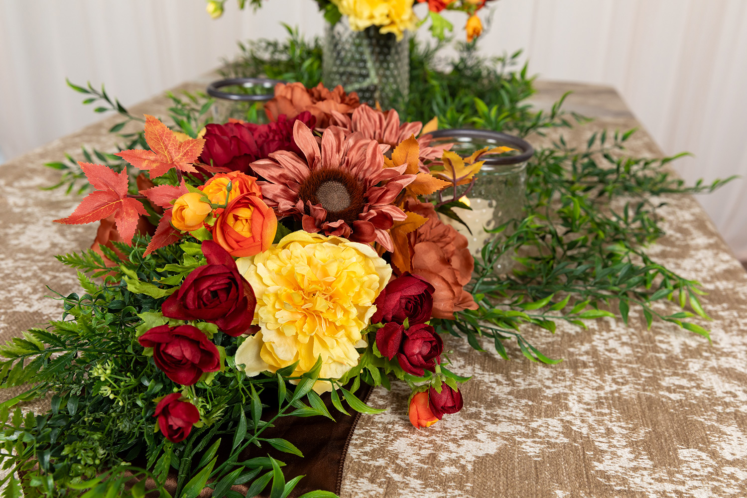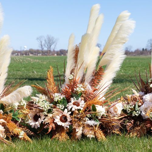 Available in both green and burgundy-brown, the fern Crescent transitions seamlessly across seasons and design palettes. Use green for garden-style or spring looks, then switch to burgundy-brown for fall or rustic events—all while keeping the same time-saving benefits.